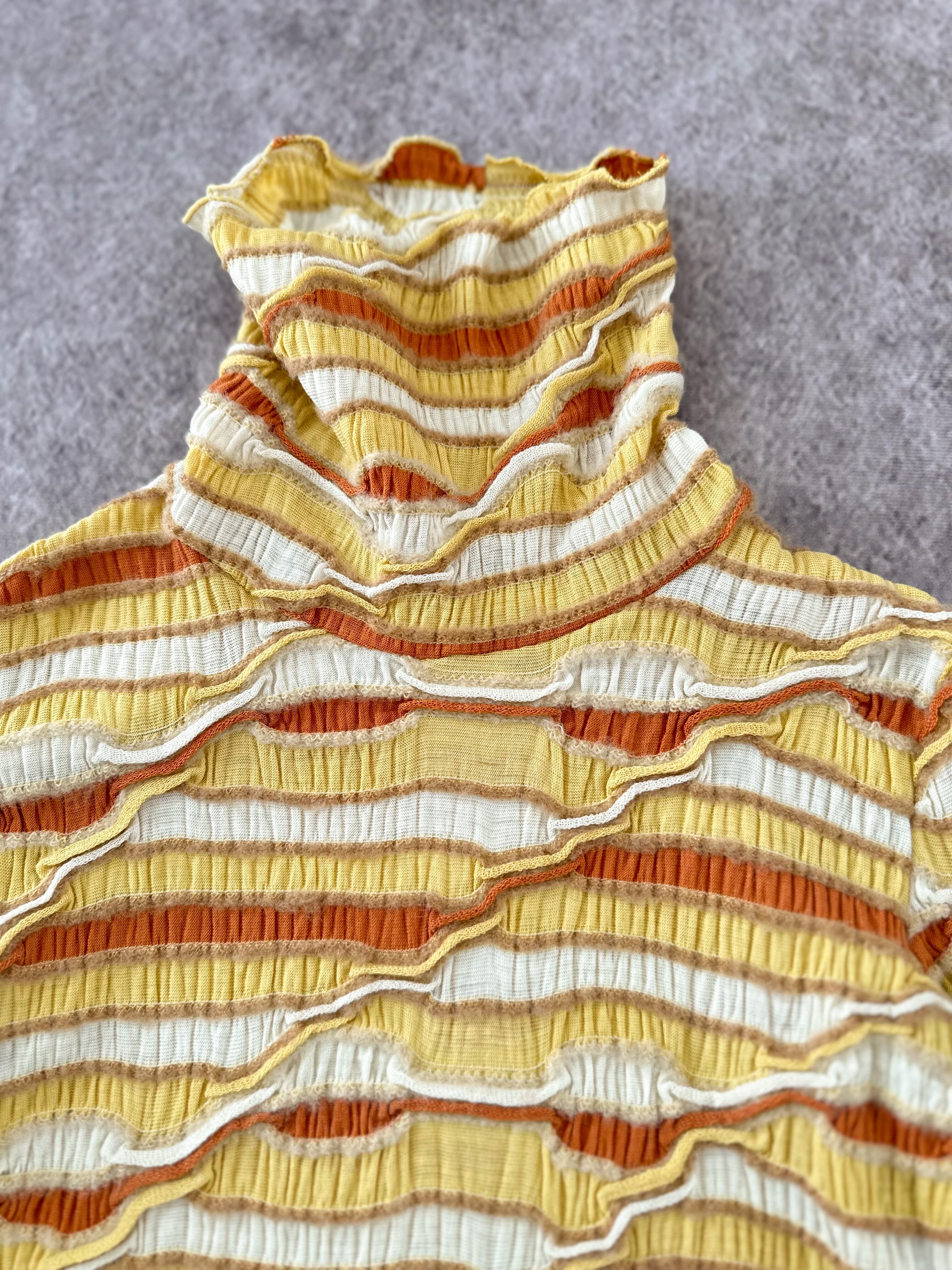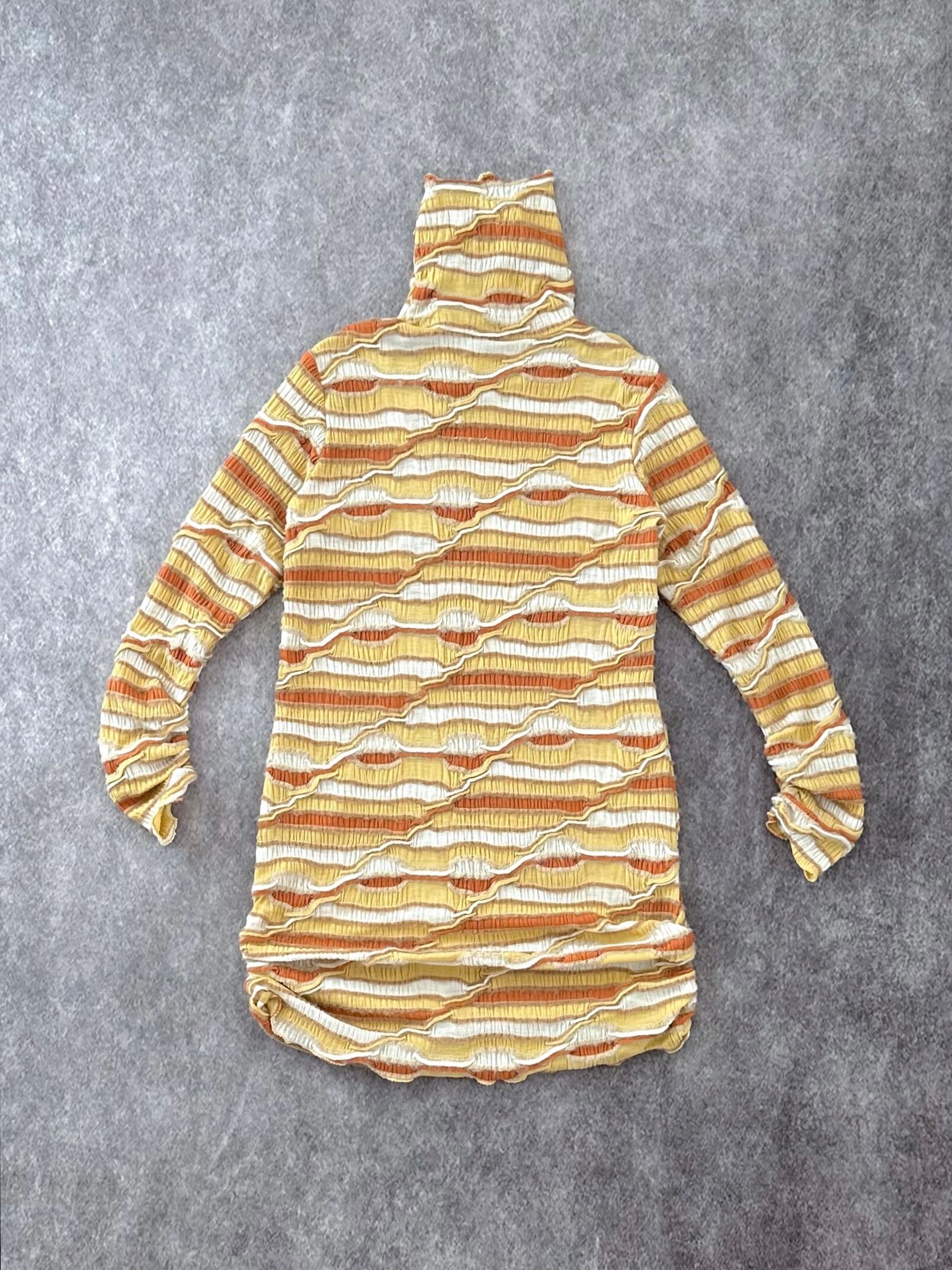 リラックス感のあるくしゅくしゅデザインが魅力のロング丈のタートルネックトップスです。
