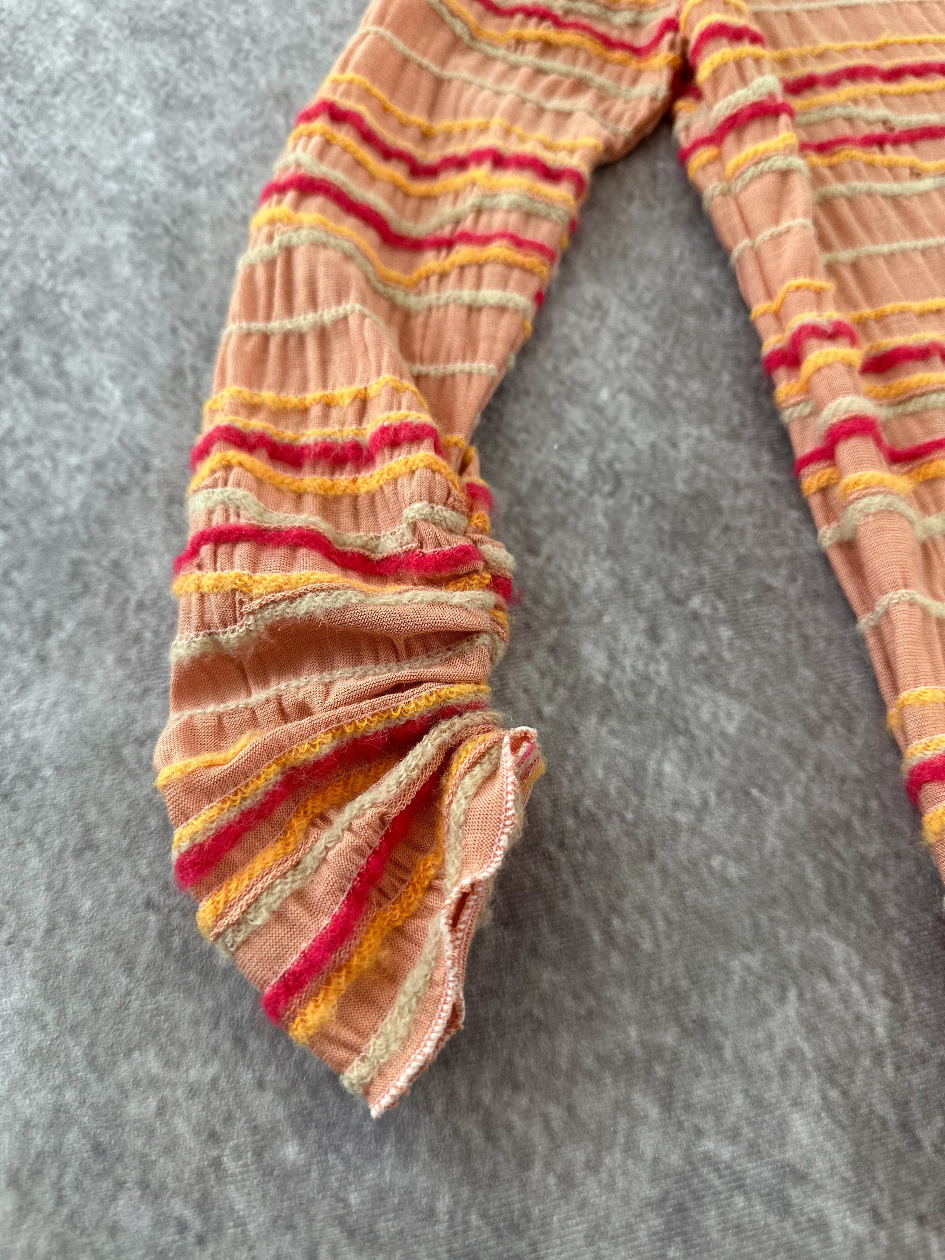 イエローは斜めボーダー、ピンクは横ボーダーと、色違いで柄違いです。