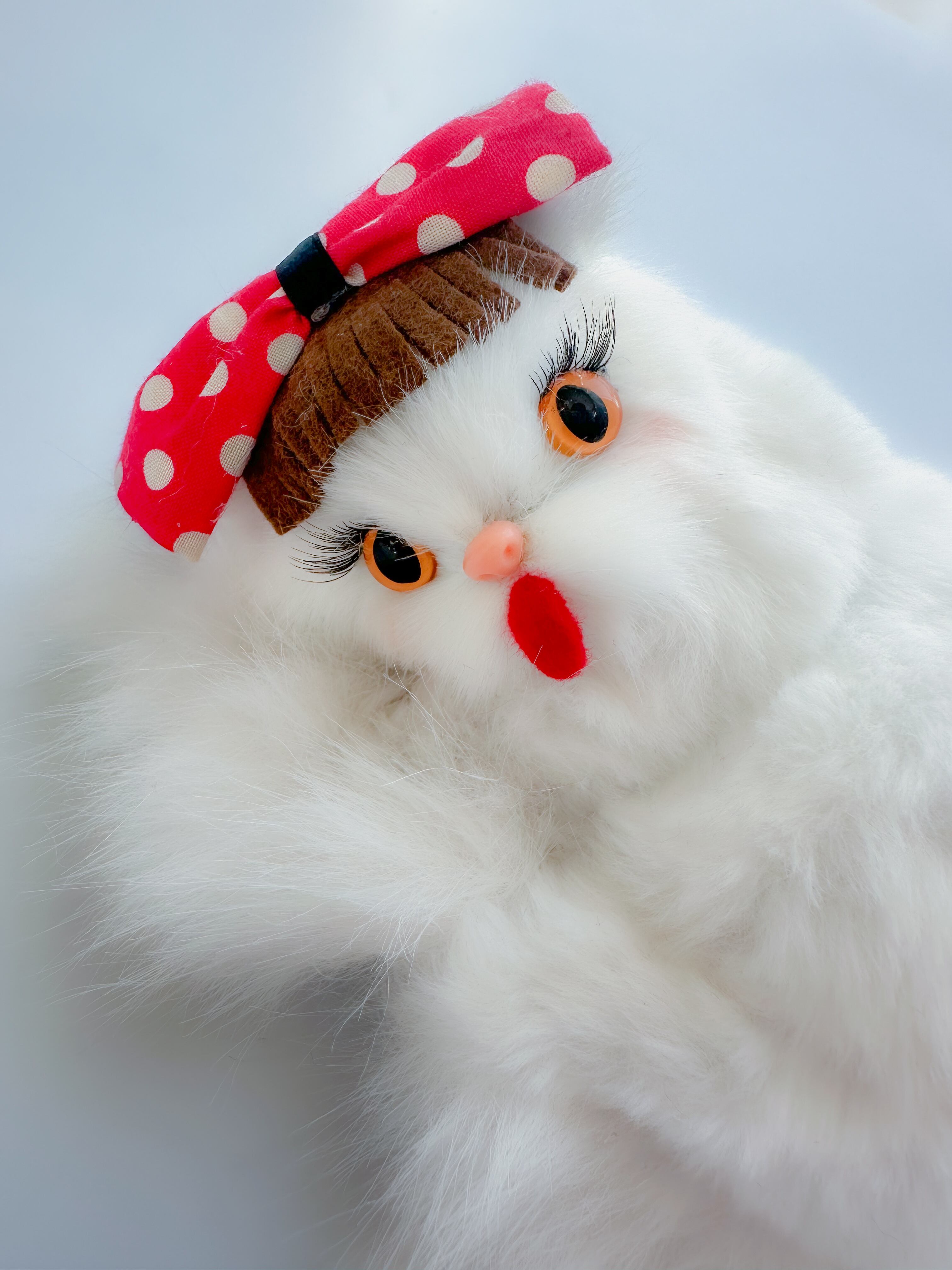 白いファー素材に包まれたボンネは、